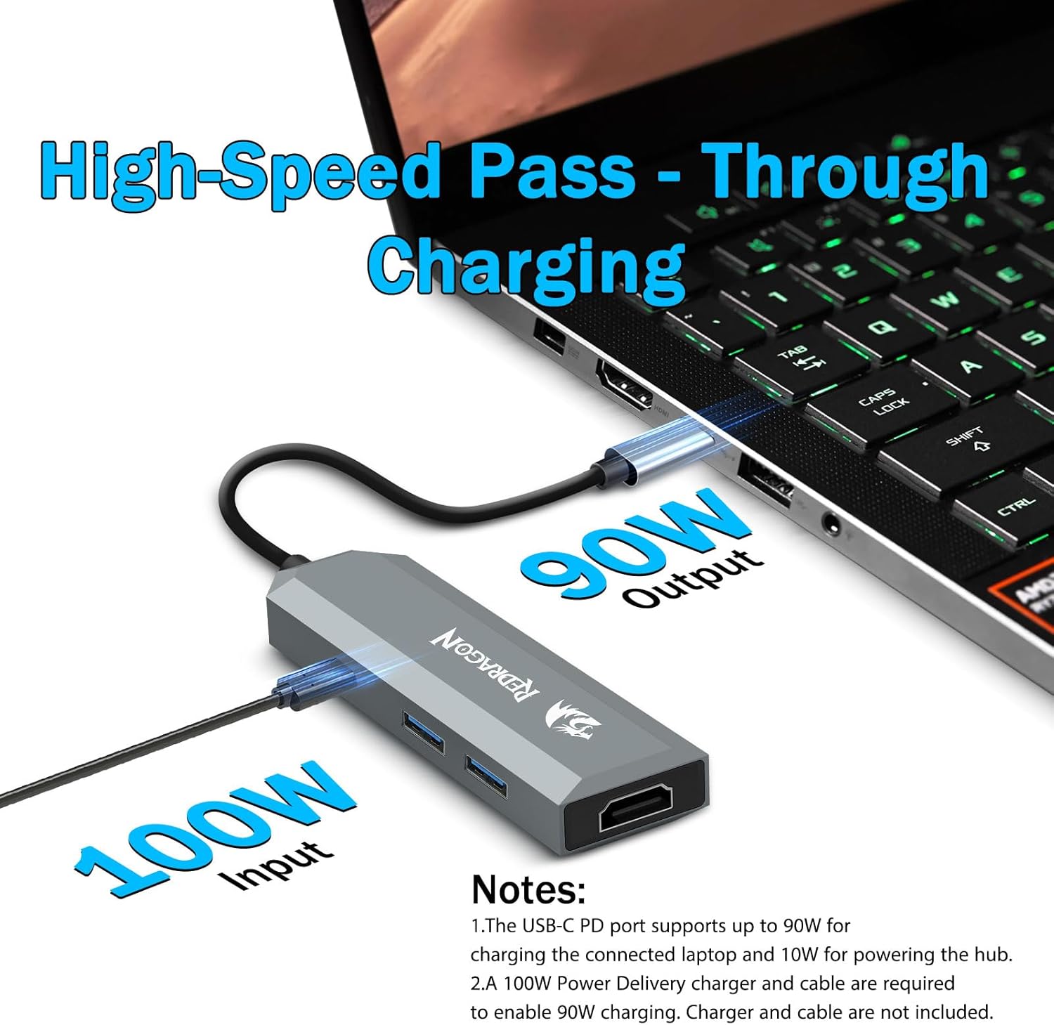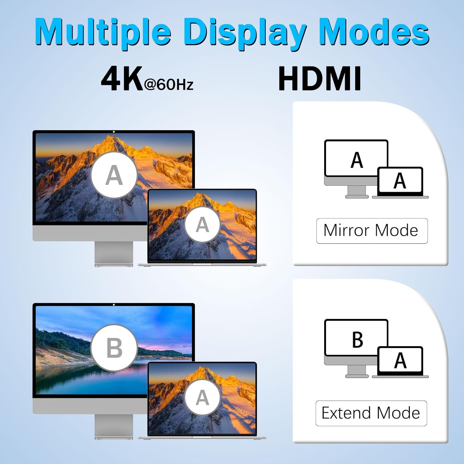 4K 60Hz HDMI স্প্লিটার সহ 4-in-1 USB-C হাব ব্যবহার করা সহজ এবং দক্ষ।