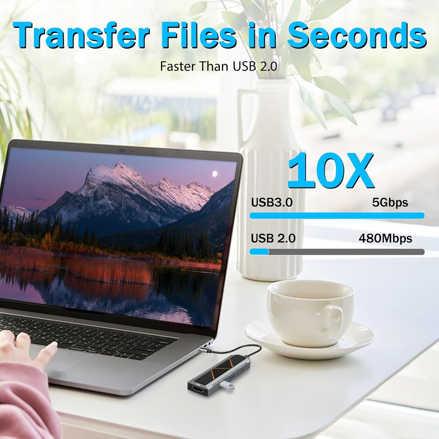 উচ্চ-গতির ডেটা স্থানান্তর কার্যকর ফাইল শেয়ারিং এবং ডিভাইস যোগাযোগ নিশ্চিত করে, যার ফলে 4K 60Hz HDMI স্প্লিটার সহ 4-in-1 USB-C হাব অফিস এবং সৃজনশীল কাজের পরিবেশ উভয়ের জন্য উপযুক্ত।