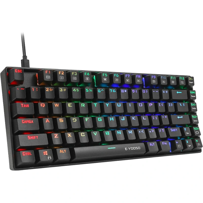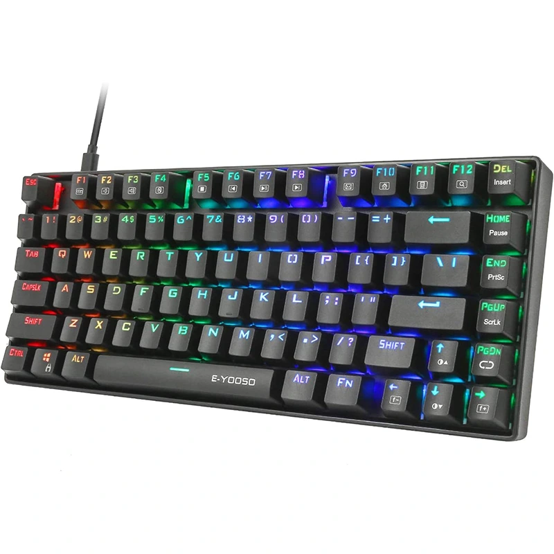 E-Yooso Z-88 PRO 60% কমপ্যাক্ট 81 কী আরজিবি মেকানিক্যাল ব্লু সুইচ এলইডি ব্যাকলিট গেমিং কীবোর্ড, বৈশিষ্ট্যের জন্য জল প্রতিরোধী এবং অ্যান্টি-গোস্টিং সহ
