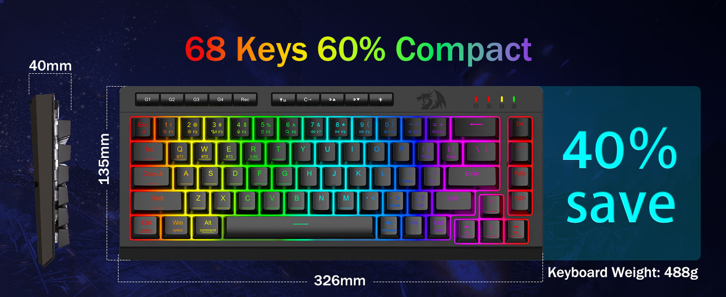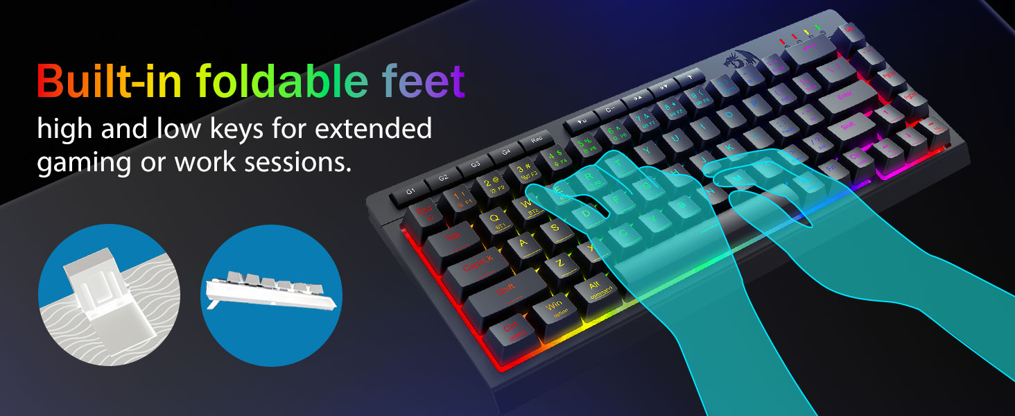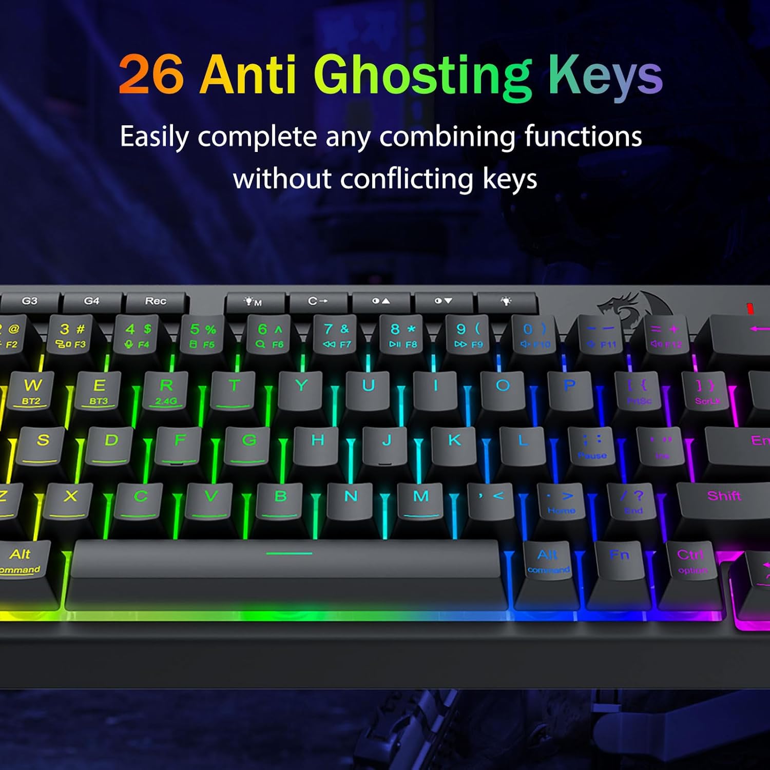 ইমারসিভ আরজিবি লাইটিং এবং কাস্টমাইজযোগ্য পরিবেশ -8টি প্রিসেট মোড (রেইনবো ওয়েভ, রিঅ্যাকটিভ টাইপিং) + 6টি DIY প্রোফাইল সহ 16.8 মিলিয়ন RGB কালার আনলিশ করুন। স্পন্দনশীল আভা থেকে স্টিলথ মোডে উজ্জ্বলতা সামঞ্জস্য করুন — গভীর রাতের গেমিং বা অফিস ব্যবহারের জন্য আদর্শ৷
