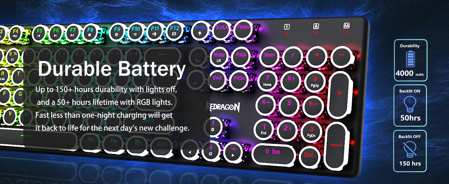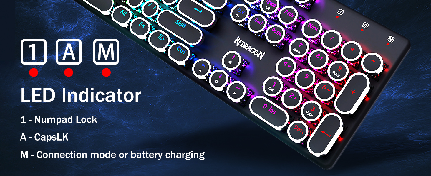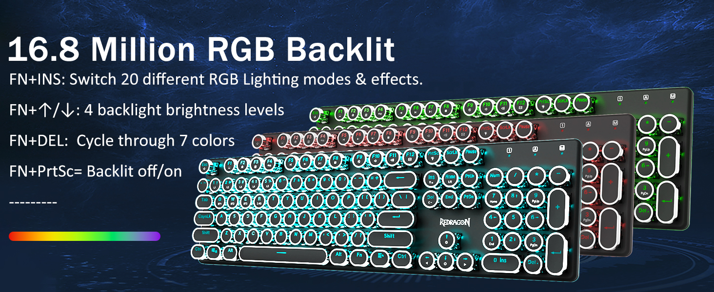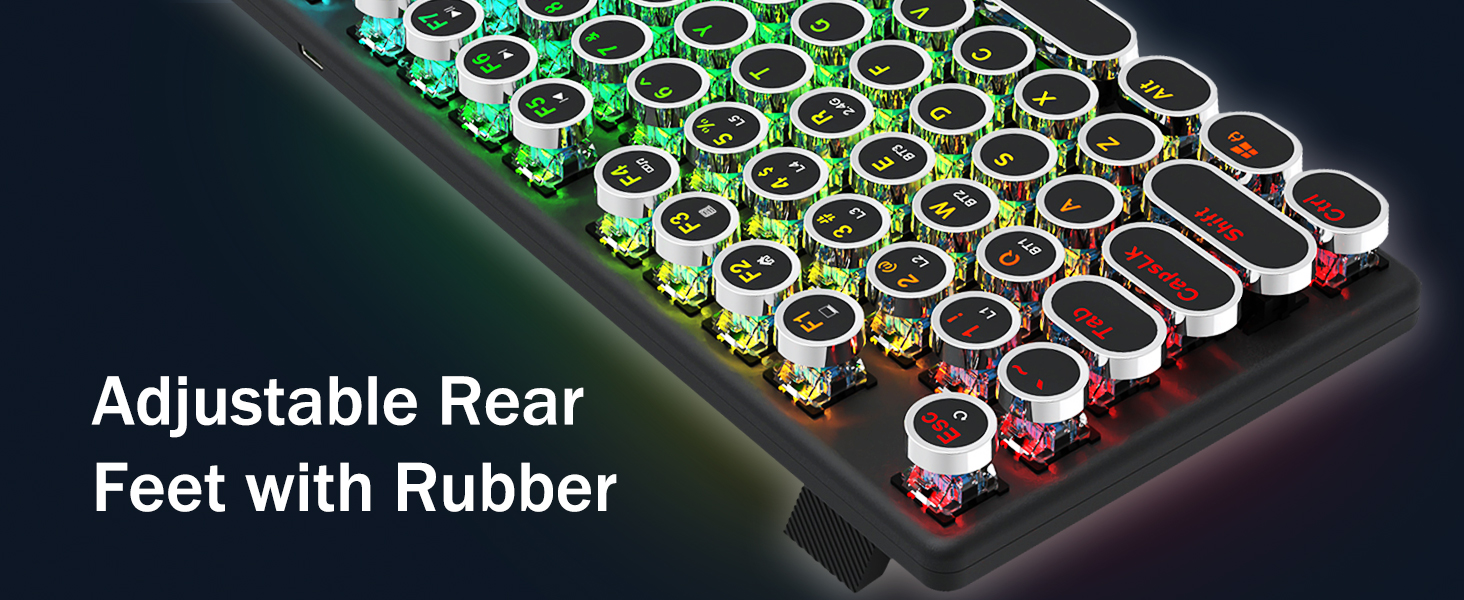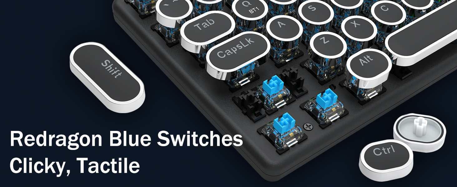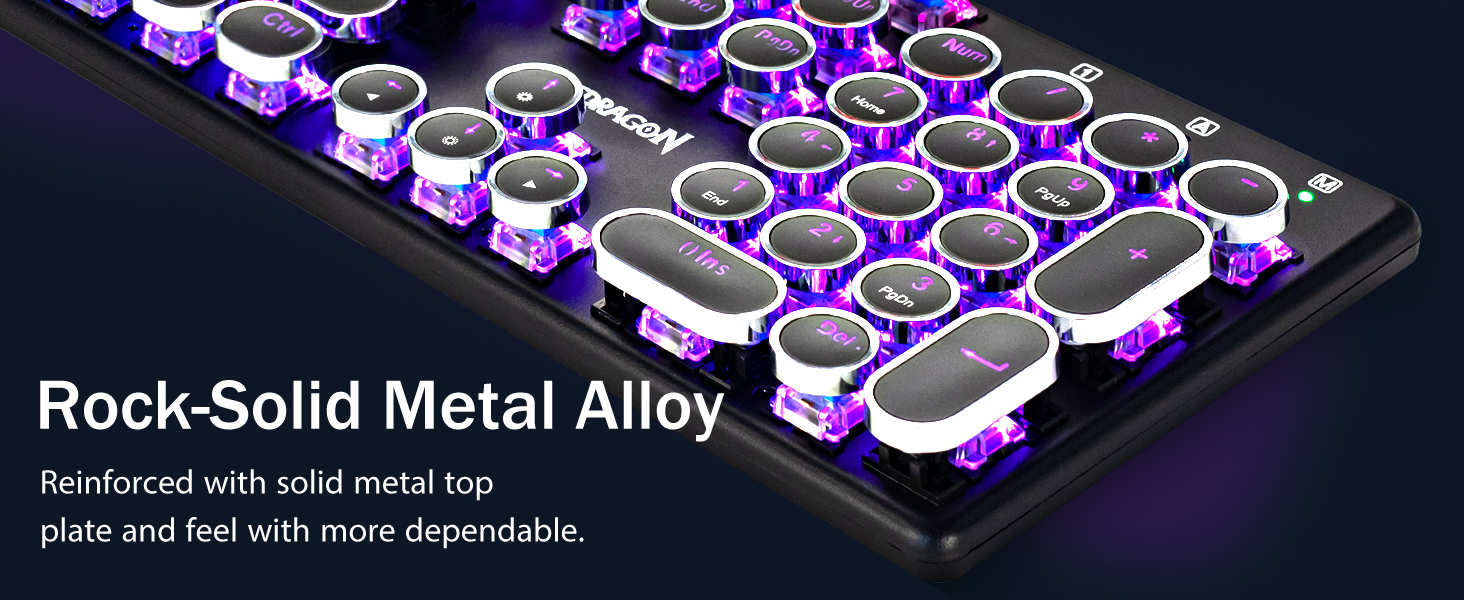 𝗥𝗲𝘁𝗿𝗼 𝗧𝘆𝗽𝗲𝘄𝗿𝗶𝘁𝗲𝗿 𝗦𝘁𝘆𝗹𝗲 𝘄𝗶𝘁 𝗠𝗲𝗰𝗵𝗮𝗻𝗶𝗰𝗮𝗹 𝗞𝗲𝘆𝘀 -রেড্রাগন মেকানিক্যাল ব্লু সুইচগুলি মাঝারি প্রতিরোধের, শ্রবণযোগ্য ক্লিক ক্ল্যাকি সাউন্ড এবং স্পর্শকাতর প্রতিক্রিয়া প্রদান করে, প্রতিক্রিয়াশীল এবং সুনির্দিষ্ট গেমিং পরিবেশ এবং কর্মক্ষমতা প্রদান করে। ভিনটেজ স্টিম্পঙ্ক কীবোর্ড রাউন্ড কীক্যাপগুলি দেখতে একটি ক্লাসিক্যাল টাইপরাইটারের মতো, আপনাকে আরামদায়ক টাইপিং অনুভূতি এবং স্থিতিশীল ক্লিক করার স্পর্শ এনে দেয়।