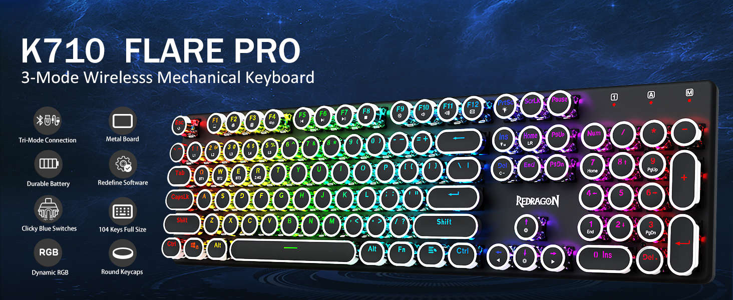 𝗗𝗲𝗽𝗲𝗻𝗱𝗮𝗯𝗹𝗲 𝗠𝗲𝘁𝗮𝗹 𝗣𝗮𝗻𝗲𝘆 & 𝟭𝟬𝘞 𝗔𝗻𝘁𝗶 𝗚𝗵𝗼𝘀𝘁𝗶𝗻𝗴 -আপগ্রেড করা FLARE PRO সংস্করণ একই ট্যাঙ্ক-সলিড ধাতব উপাদান ব্যবহার করে। একটি প্রিমিয়াম টাইপিং অভিজ্ঞতার জন্য ডেস্কে কীবোর্ডটিকে স্থির এবং মার্জিত রাখুন। K710 কীবোর্ড 104-কী অ্যান্টি-ঘোস্টিং প্রযুক্তি সমর্থন করে, বিরোধ ছাড়াই একই সময়ে একাধিক কী চাপতে দেয়।