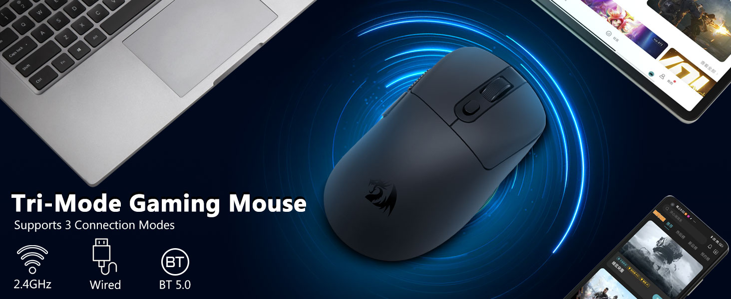 সংযোগ: ট্রাই-মোড (2.4GHz ওয়্যারলেস, ব্লুটুথ, USB তারযুক্ত)