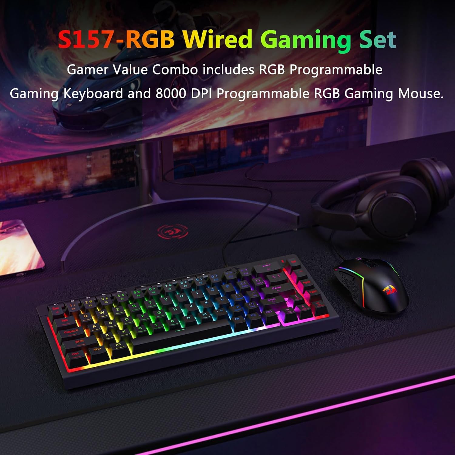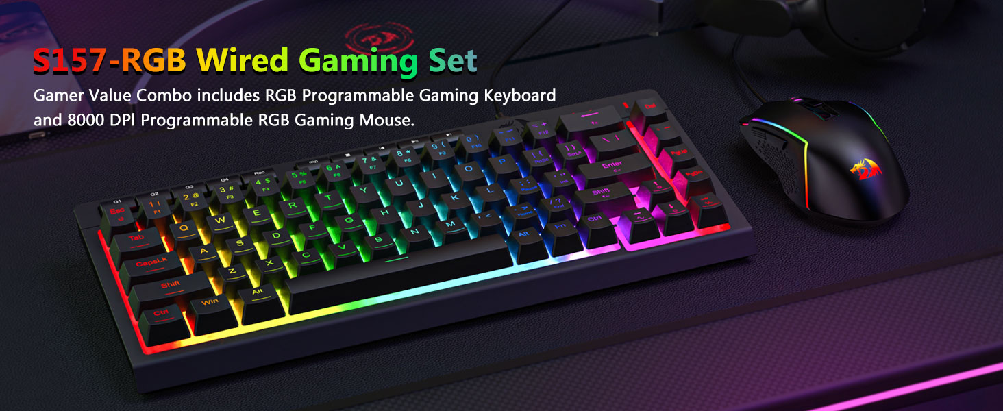 কালো S157 RGB ব্যাকলিট তারযুক্ত গেমিং কীবোর্ড এবং মাউস কম্বো