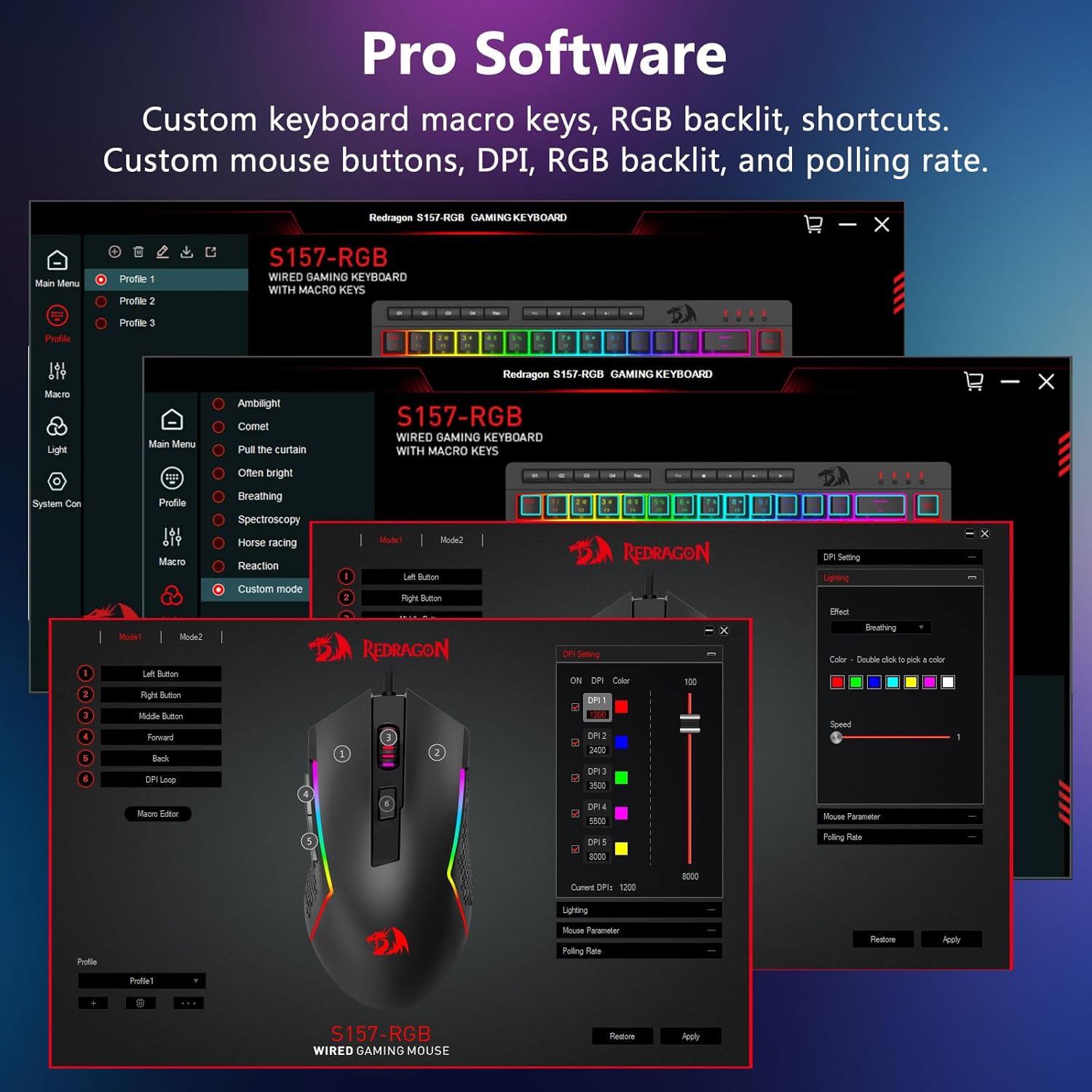 কালো S157 RGB ব্যাকলিট তারযুক্ত গেমিং কীবোর্ড এবং মাউস কম্বো বিভিন্ন পরিস্থিতিতে সামঞ্জস্যপূর্ণ পারফরম্যান্স সরবরাহ করে। কীবোর্ড সঠিক কীস্ট্রোক সমর্থন করে, যখন মাউস নেভিগেশন এবং গেমপ্লের জন্য নির্ভরযোগ্য ট্র্যাকিং প্রদান করে।