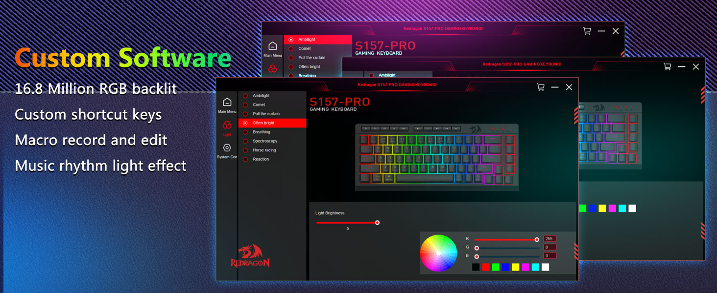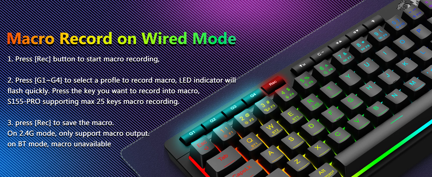 কাস্টমাইজযোগ্য ম্যাক্রো, ডেডিকেটেড ব্যাকলিট কন্ট্রোল- অবিলম্বে 4টি অনবোর্ড ম্যাক্রো কী (G1-G4) প্রোগ্রাম করুন—কোন সফ্টওয়্যারের প্রয়োজন নেই৷ গেমিংয়ের জন্য জটিল কম্বো, উৎপাদনশীলতার জন্য শর্টকাট বা মিডিয়া কমান্ড রেকর্ড করুন। সেকেন্ডের মধ্যে আপনার কর্মপ্রবাহ পুনরায় সংজ্ঞায়িত করুন। আপনি ফাংশন কাস্টমাইজ করতে, ম্যাক্রো তৈরি করতে, আরজিবি লাইট সামঞ্জস্য করতে এবং শর্টকাট সেট করতে সফ্টওয়্যার ব্যবহার করতে পারেন। অ্যান্টি-গোস্টিং কী (আন্ডারস্কোর সহ কী) বৈশিষ্ট্যযুক্ত যা আপনার ইচ্ছামত দ্রুত এবং নির্ভুল গেম প্রতিক্রিয়ার জন্য 26টি কী একসাথে কাজ করার অনুমতি দেয়। উজ্জ্বলতা, আলোক মোড, এবং গেম মোডের জন্য দ্রুত অ্যাক্সেস বোতামগুলি দ্রুত উজ্জ্বলতা, আলোক প্রোফাইলগুলি সামঞ্জস্য করতে এবং একটি বোতামের স্পর্শে গেম মোড সক্ষম করতে।