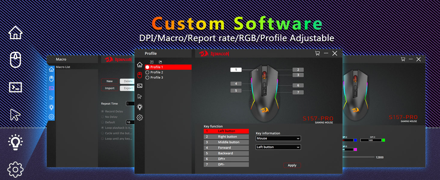 সর্বোচ্চ 12800 ডিপিআই সামঞ্জস্যযোগ্য- 5টি অন-বোর্ড ডিপিআই স্তরের সাথে প্রস্তুত যা আপনার মাউসের গতিবিধি প্রতিটি নির্দিষ্ট অবস্থানে নিবন্ধিত হতে দেয়। সফ্টওয়্যার সহ DIY-এর জন্য 5টি DPI স্তর বিনামূল্যে, গেমারদের গেমে দ্রুত স্যুইচ করতে সক্ষম করে৷