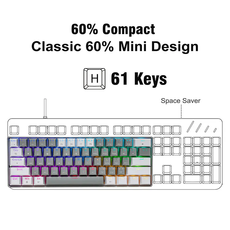পোর্টেবল 60% মেকানিক্যাল তারযুক্ত গেমিং কীবোর্ড
