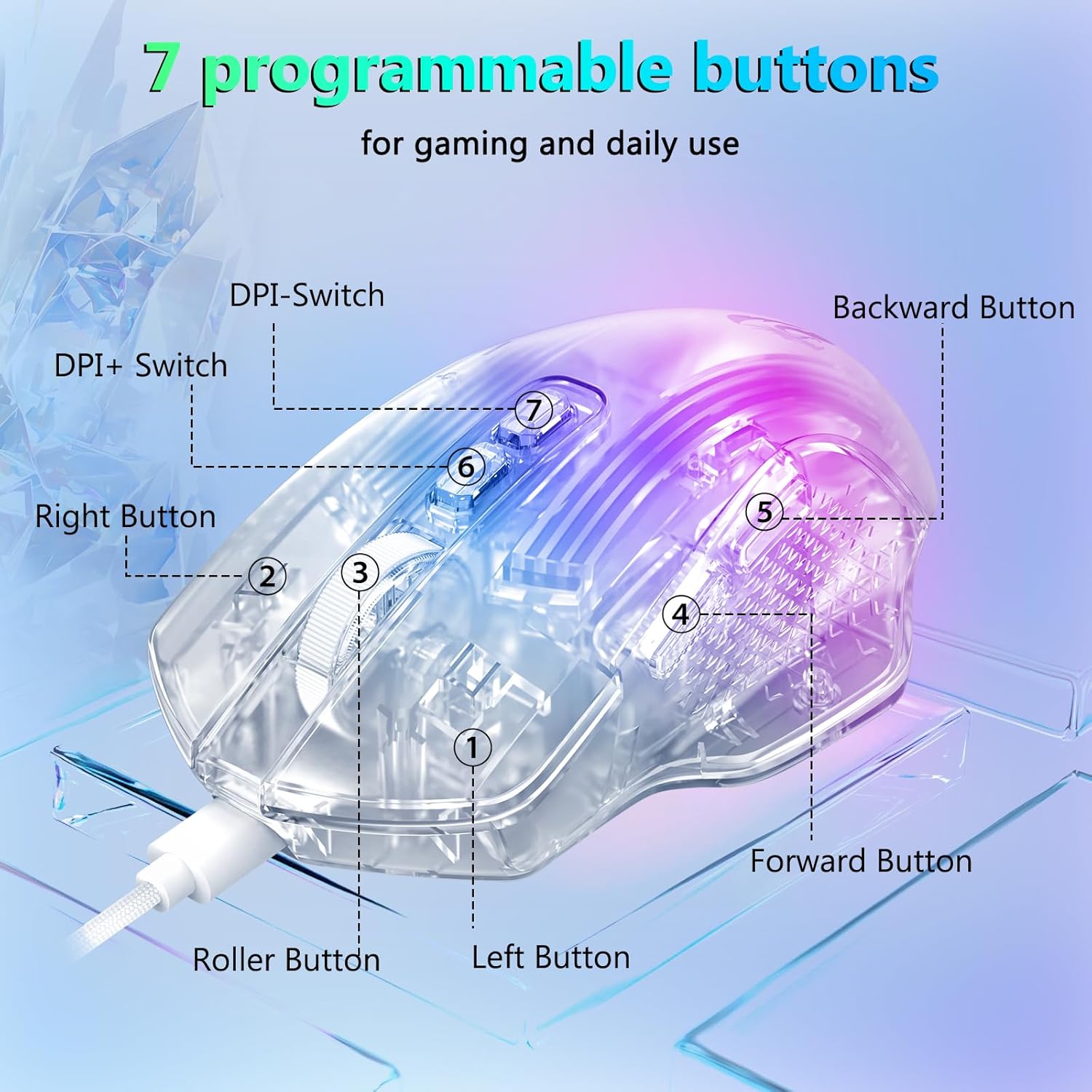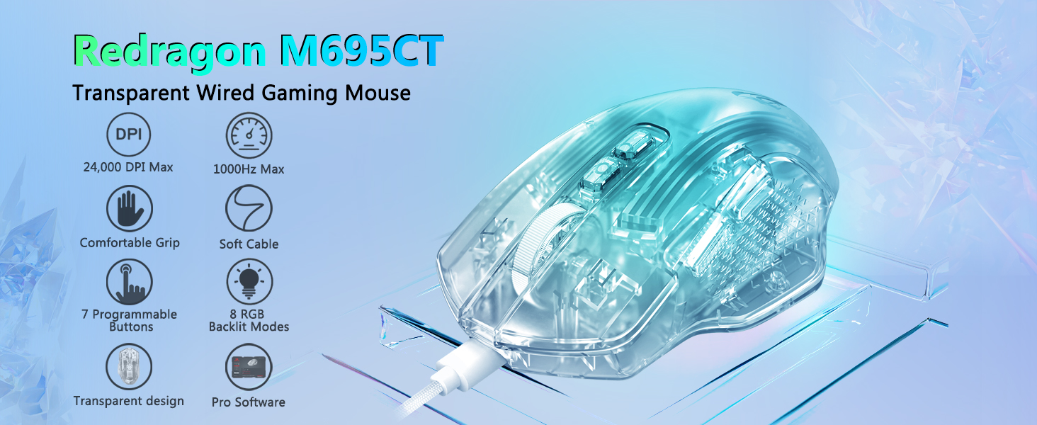 চুয়াংকুয়ান হোয়াইট M695CT 24,000 DPI 8 RGB LED ব্যাকলিট মোড ওয়্যার্ড গেমিং মাউস অতি-নির্ভুল ট্র্যাকিং, মসৃণ নিয়ন্ত্রণ এবং গতিশীল আলো সরবরাহ করে, যা গেমারদের জন্য তৈরি করা হয়েছে যারা গতি, নির্ভুলতা এবং শৈলীর দাবি করে।