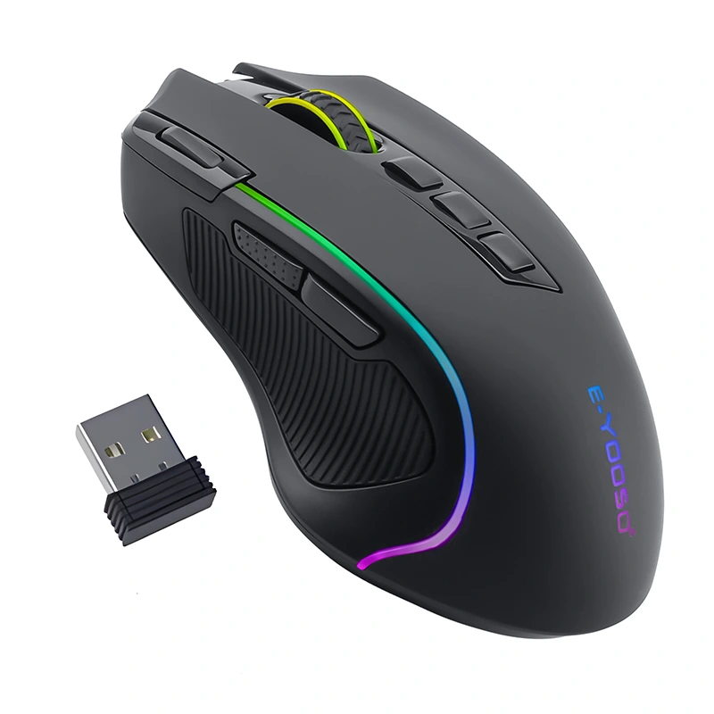 ই-ইউসো ওয়্যারলেস গেমিং মাউসের 8000 ডিপিআই অপটিকাল সেন্সর রয়েছে এবং এটি আরজিবি ব্যাকলিট সহ। ম্যাক্রো রেকর্ডিং সাইড বোতাম, র্যাপিড ফায়ার বোতাম সহ ওয়্যারলেস গেমিং মাউস আরজিবি 9 প্রোগ্রামেবল বোতাম রয়েছে, গেমটিকে এক ধাপ দ্রুত করুন
